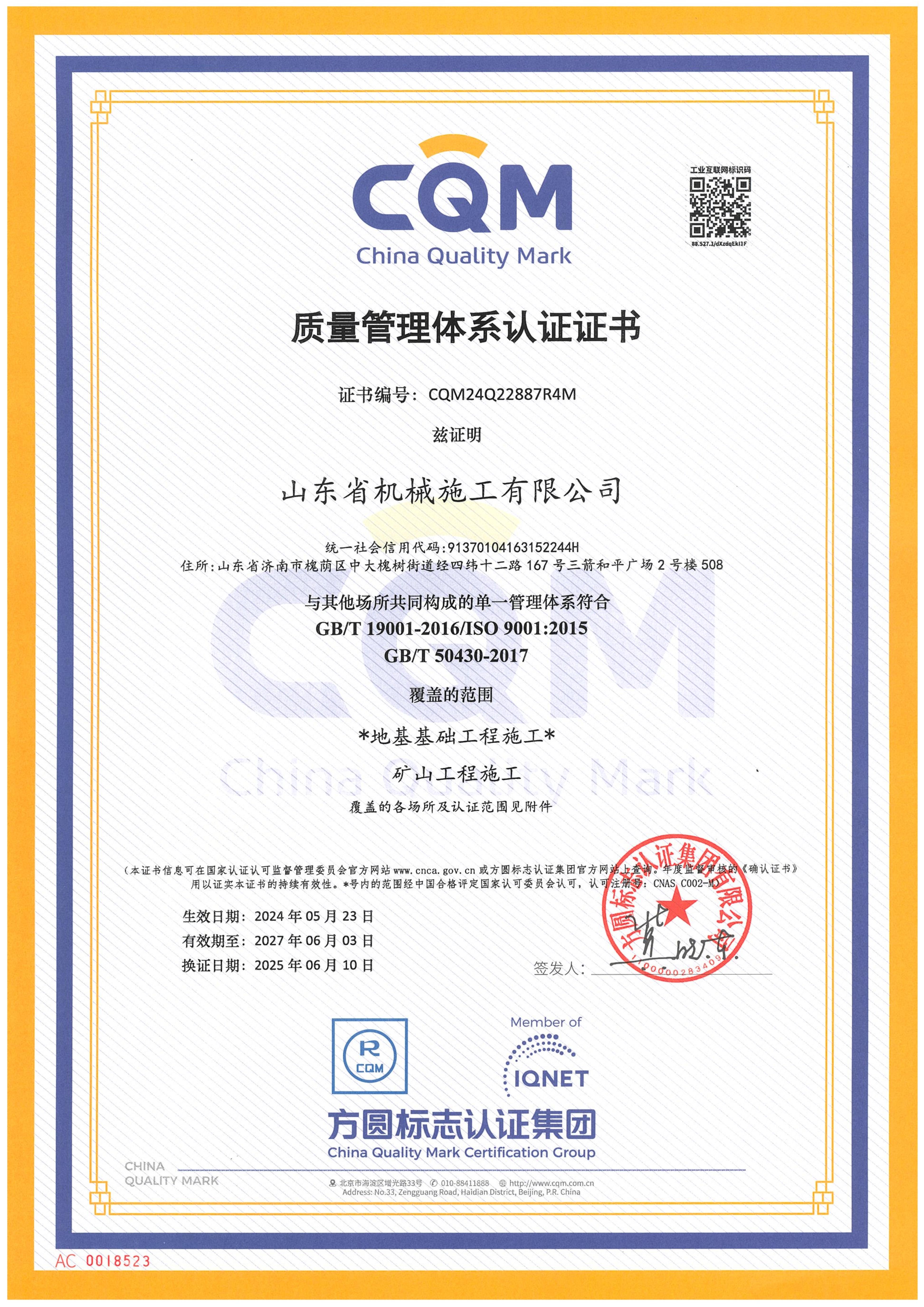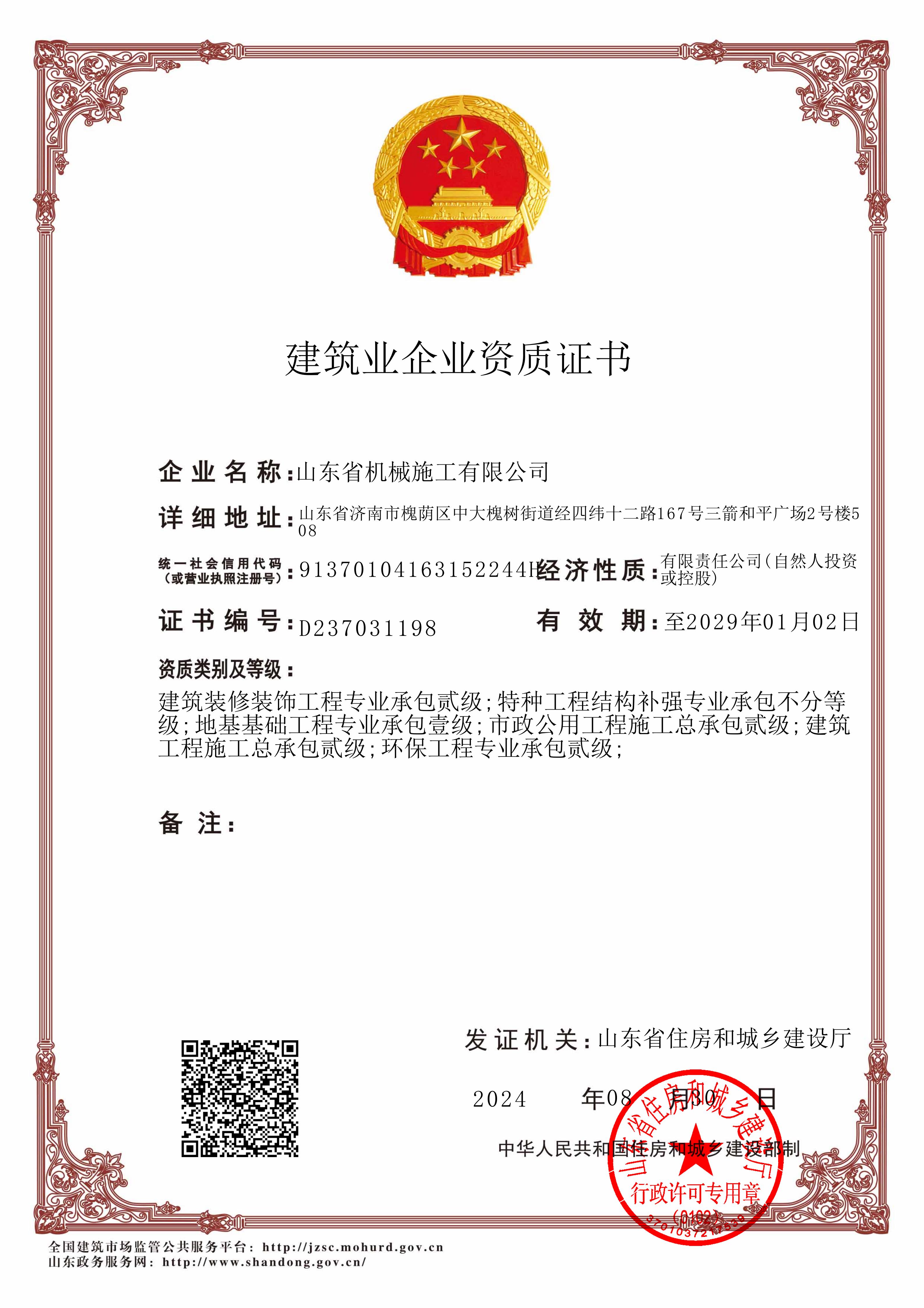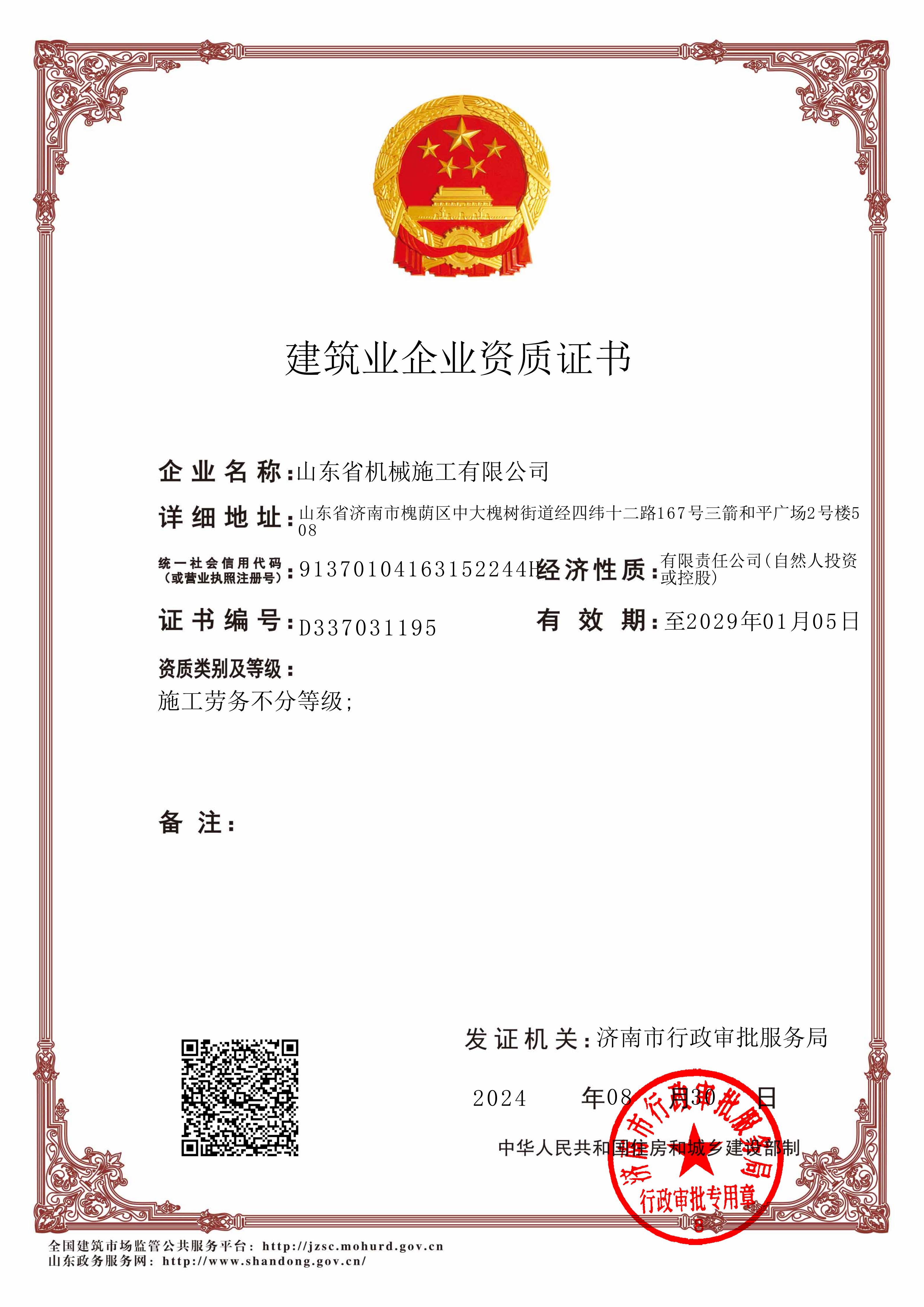 山東省機(jī)械施工有限公司資質(zhì)證書(shū)