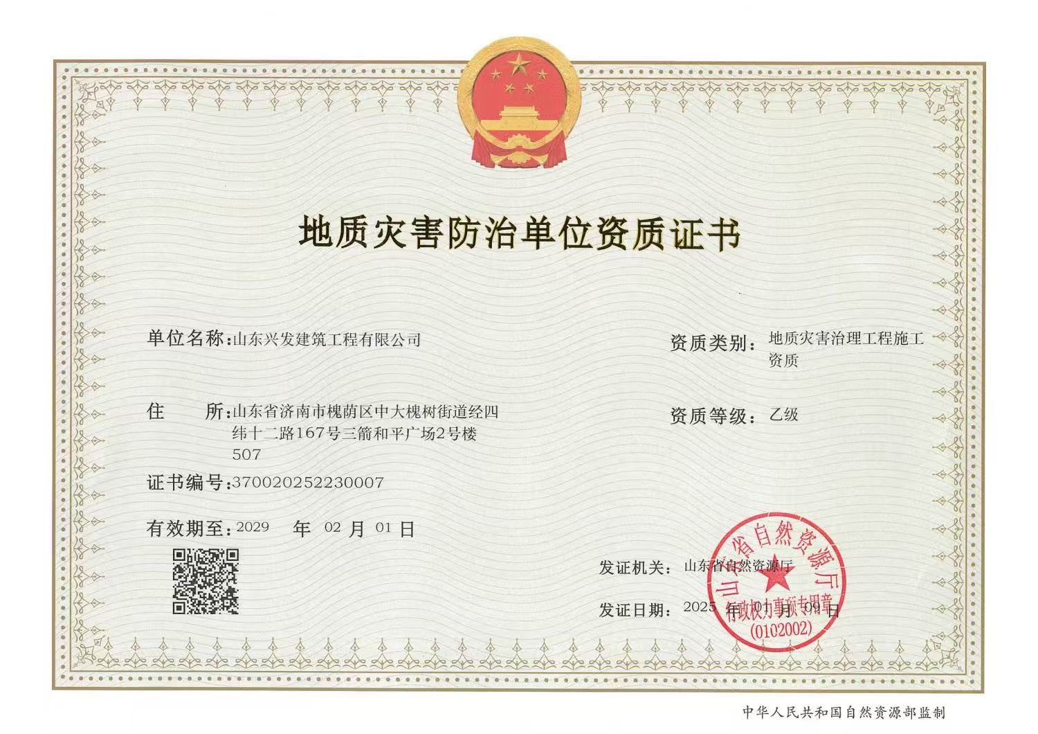 山東興發(fā)建筑工程有限公司資質(zhì)證書(shū)