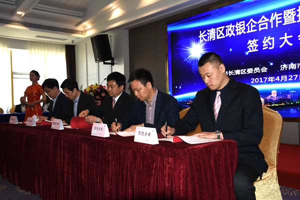 公司董事長(zhǎng)沈繽代表公司與長(zhǎng)清區(qū)簽署公司開發(fā)建設(shè)新地產(chǎn)合作協(xié)議