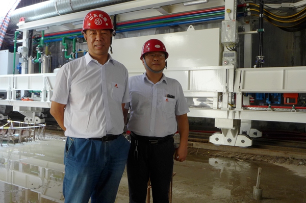 登上大型設(shè)備,沈董檢查設(shè)備、督促員工安全規(guī)范操作