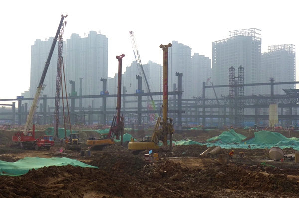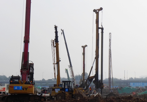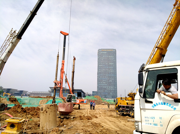 濟(jì)南西部會(huì)展中心,占地332畝,其中地上建筑22.6萬(wàn)平方米,總建筑面積55萬(wàn)平方米,是濟(jì)南又一個(gè)地標(biāo)式建筑。圖為我公司正在施工樁基礎(chǔ)