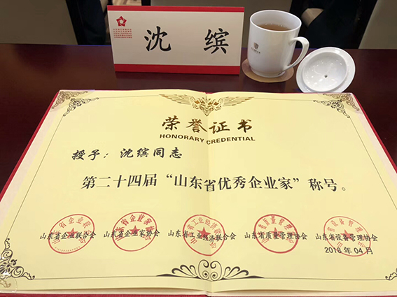 公司董事長被授予“山東省優(yōu)秀企業(yè)家”榮譽稱號