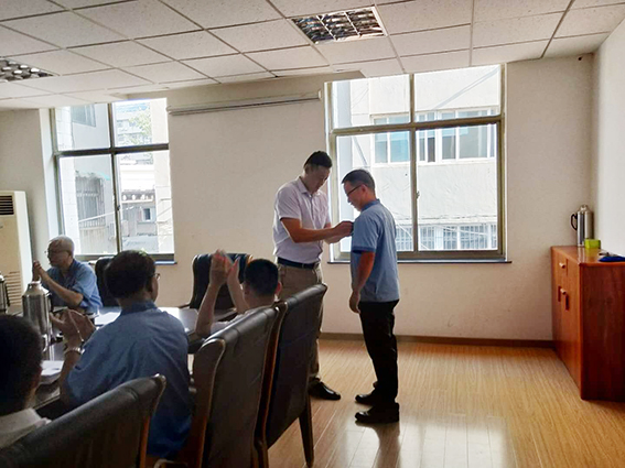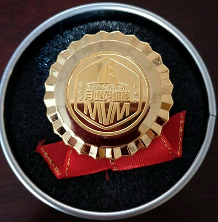 8月4日盧留英同志受邀參加了公司每月一次高層會(huì)議,董事長(zhǎng)沈繽親自為其授獎(jiǎng)價(jià)值5000元的MVM純金勛章。該同志還將享受2019年公司組織的出國(guó)旅游活動(dòng)、佩戴金質(zhì)勛章,前排就坐參加年度表彰大會(huì)。