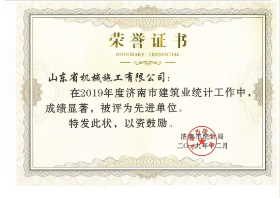 山東省機械施工有限公司被評為濟南市建筑業(yè)統(tǒng)計工作先進單位