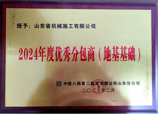 2月15日,在中建八局第二建設(shè)有限公司山東公司分包商大會(huì)上,再傳捷報(bào),公司榮膺“2024年度優(yōu)秀分包商(地基基礎(chǔ))”稱號(hào)。